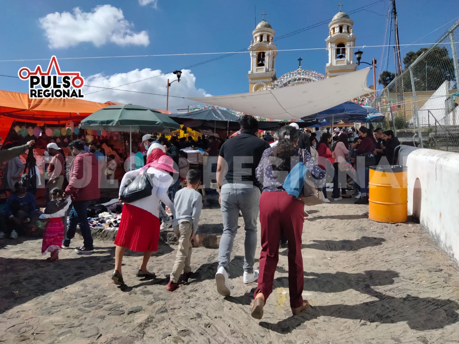 Aunque había presencia policiaca para el orden vial, el acceso al Santuario de Guadalupe, que se encuentra en una cima de un pequeño cerro, en sus escalinatas un paso era para el ascenso y otro para el descenso de personas, donde además se encontraban colocados puestos de frutas de temporada como chirimoyas, granadas, duraznos y tamales de pinole con guayaba o chocolate.