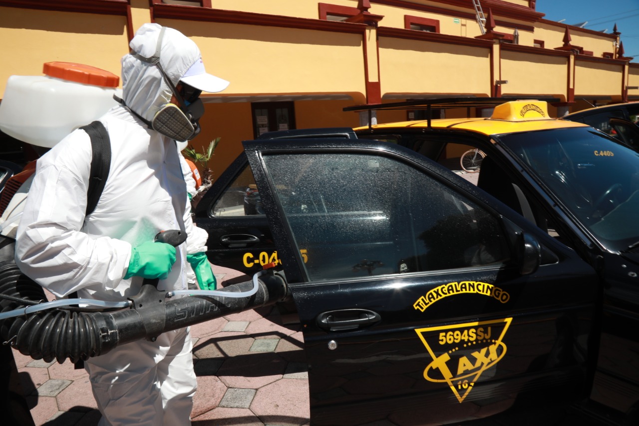 Por instrucciones de la presidenta municipal Karina Pérez Popoca, integrantes de las agrupaciones Taxi Tlaxcalancingo, Taxi Amigo, Taxis Las Américas, Taxi Coalición, Tochitepc y Grupo Driver’s acudieron a Palacio Municipal para el servicio de sanitización y que puedan brindar un servicio garantizo a sus clientes.