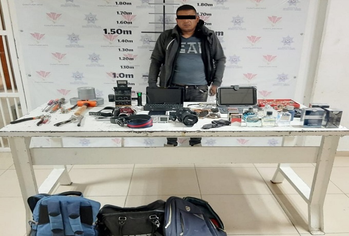 Elementos de Seguridad Pública del Municipio de Cuautlancingo, lograron la detención de Juan Pablo N, de 30 años de edad, originario de Tlalnepantla, Estado de México, quien quedó asegurado por robo agravado (casa habitación) y lesiones calificadas.