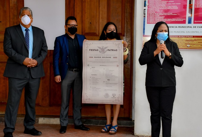 Con el firme propósito de continuar fomentando los valores cívicos e históricos que nos dan identidad como mexicanos, autoridades municipales de Cuautlancingo, encabezados por la Presidenta Municipal, Lupita Daniel Hernández e integrantes de la Comisión de Fiestas Patrias colocaron el bando solemne, en la entrada de la Presidencia Municipal, el cual marca el inicio de las actividades correspondientes al mes patrio.