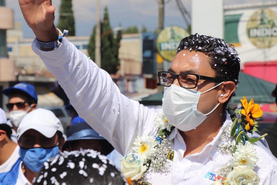 El abanderado del PAN, PRD y PSI realizó una caminata por la junta auxiliar de San Baltazar Temaxcalac en la que dio a conocer sus propuestas de campaña.