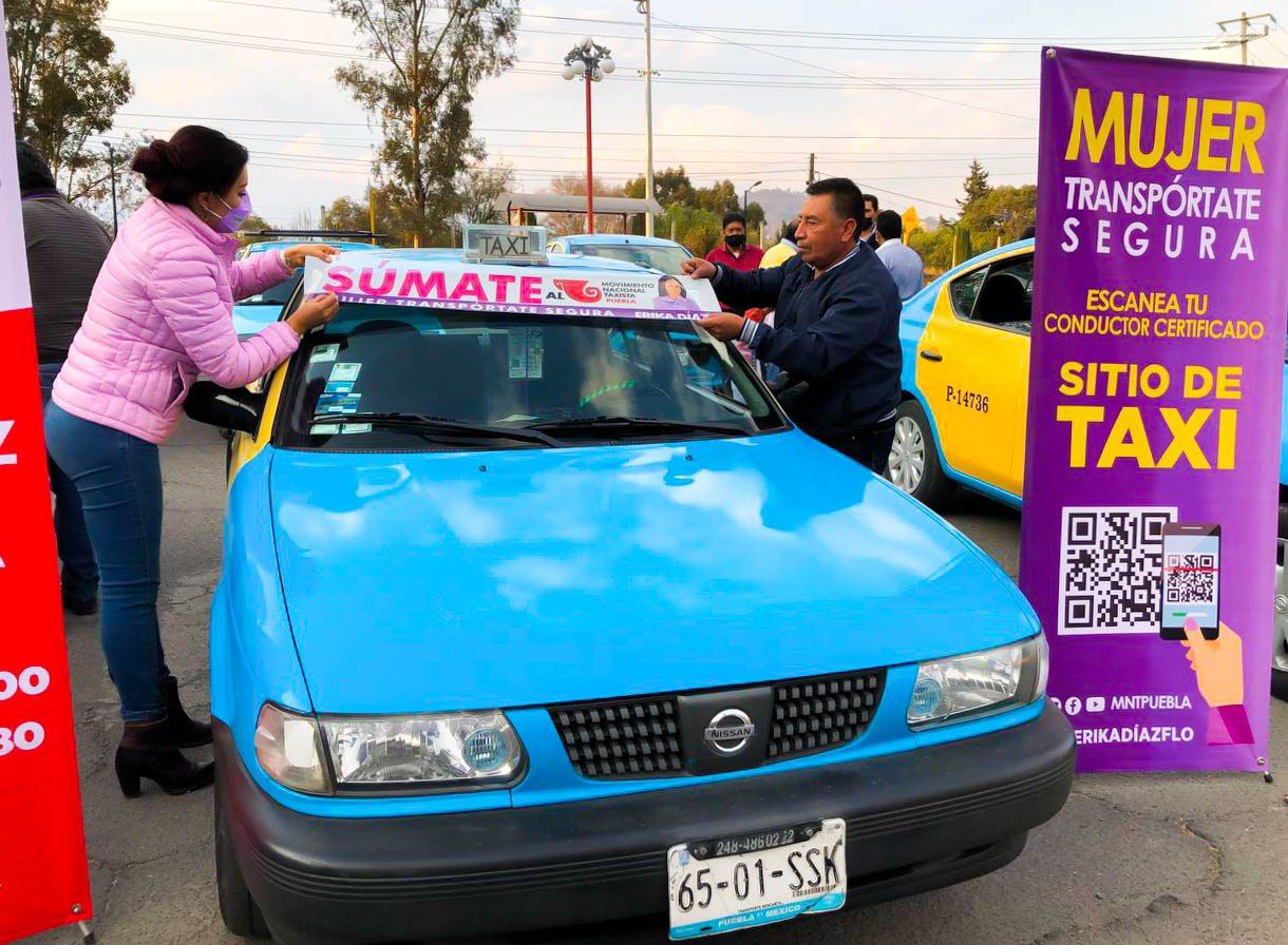 Taxistas de San Martin Texmelucan se suman a la campaña Mujer Transpórtate Segura